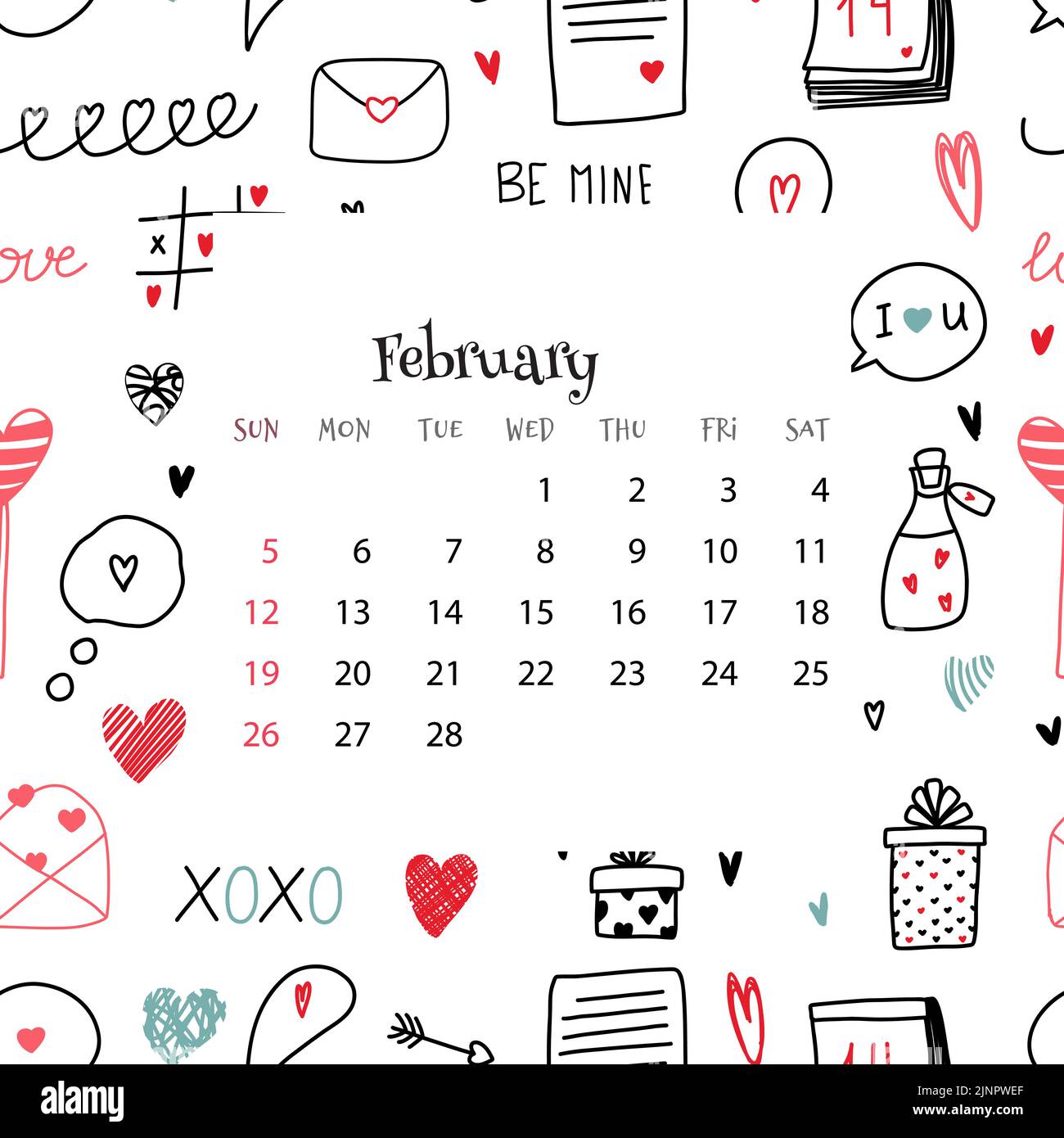 Source : www.alamy.comCalendar 2022 template for Holiday, Happy valentine’s day concept